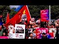 As protests spread overseas, thousands of Chinese students gathered across Australia to voice their support for China. Many held the Chinese national flag and chanted the national anthem.